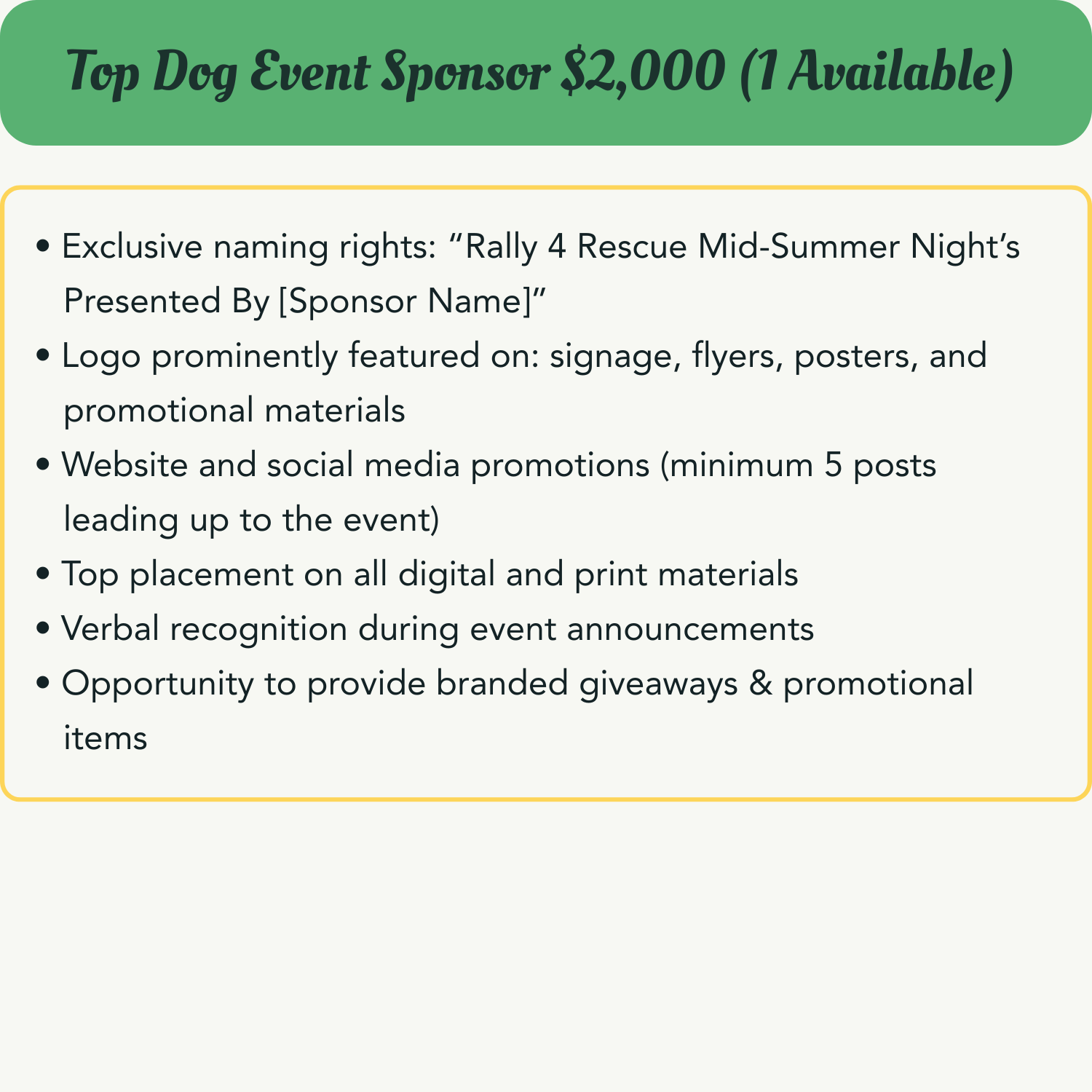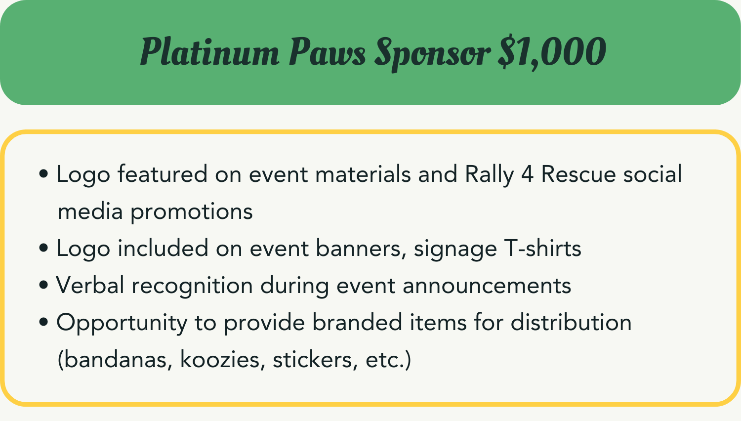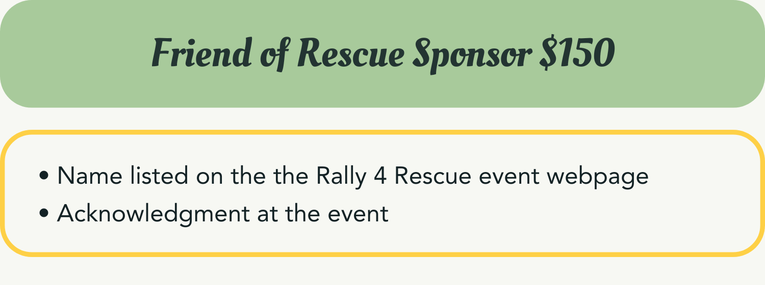 To reserve your sponsorship, please complete the form. We’ll follow up to schedule a quick meeting and confirm next steps. Thank you for supporting Rally 4 Rescue!